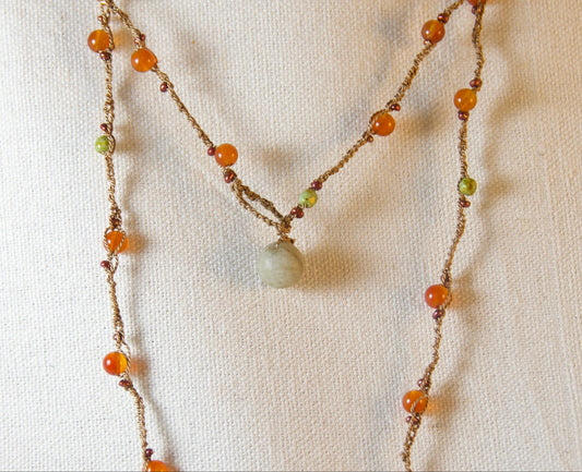 Crafted with care, each piece is completely handmade and combines genuine stones and raw materials